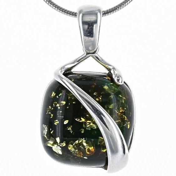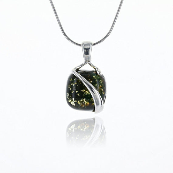Height: .5″ Width: .5″ Bail: .25" Stone: Baltic Green Amber Metal: .925 Sterling Silver in Rhodium Vermeil to prevent tarnish *The image may show slight differences in texture, color, size and shape **The natural properties and process of amber formation define the unique beauty of each piece Imported from Poland