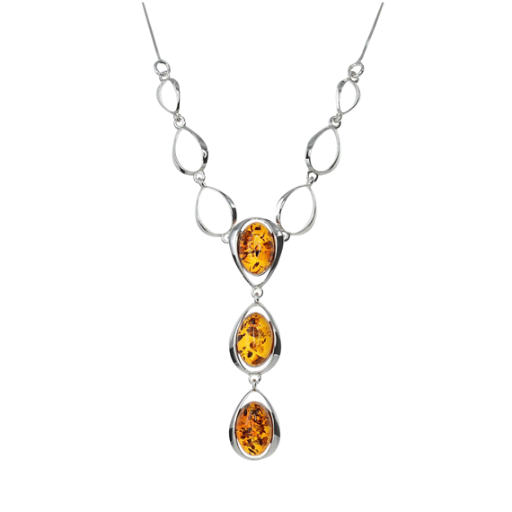 3 oval-shaped Baltic honey amber pieces have been set, seemingly suspended in .925 sterling silver to make this elegant necklace.