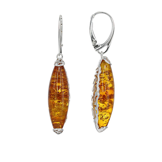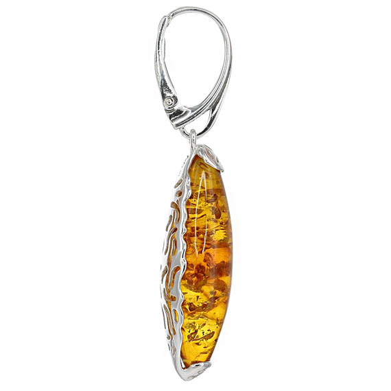 The fluted style of these Baltic amber earrings set it apart and the sterling silver filigree setting showcases the amber perfectly.