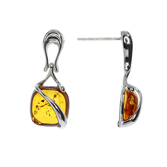 Genuine Baltic Amber in a beautiful honey color, cut in a simple square shape with sterling silver detail. This simple, but striking earring will be a wonderful addition to any ensemble.