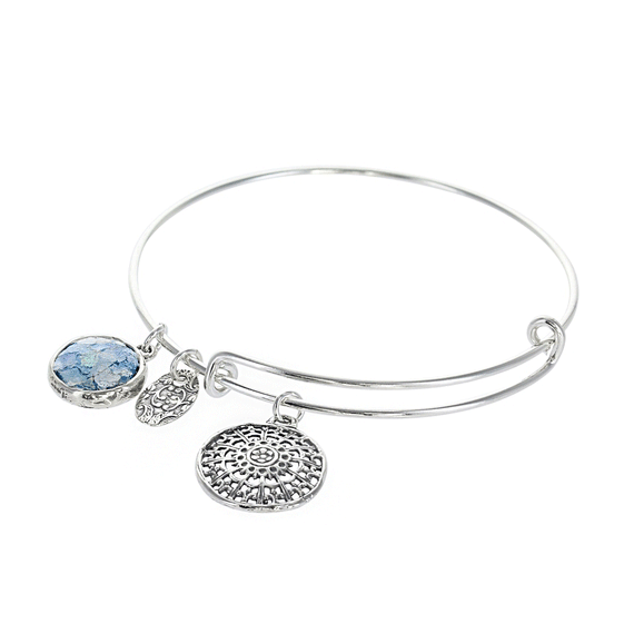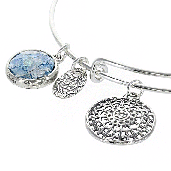 Roman Glass slide-style bangle with 3 charms. The perfect choice for fashionistas looking for a connection to the ancients.