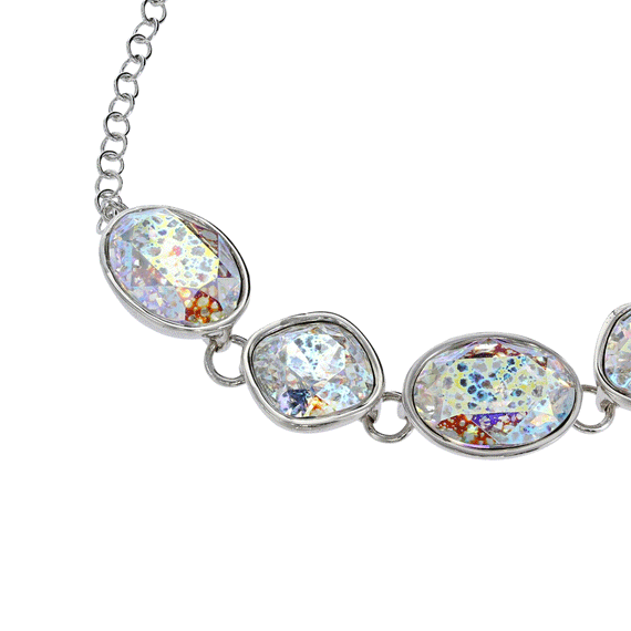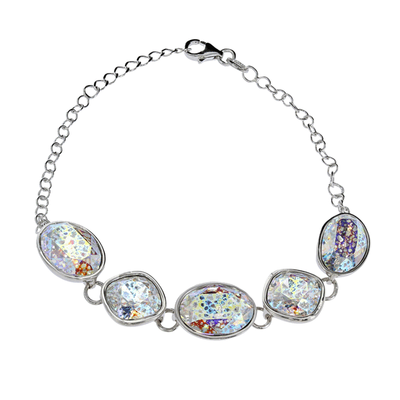 Stunning Swarovski crystals are finished in a unique speckled treatment with a rainbow of colors throughout, giving this bracelet an antique feel.
