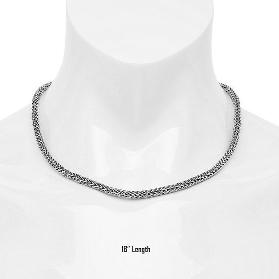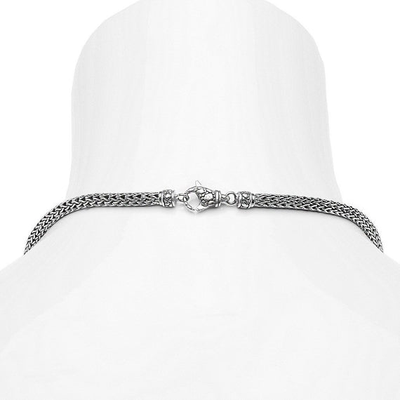 The hand-woven Tulang Naga style chain is made by skilled Balinese silver artisans with generations of experience.