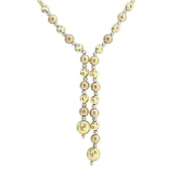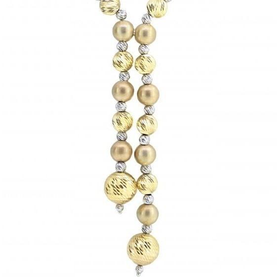 Lariat style necklace in 2-tone gold vermeil + platinum vermeil spacer beads. Genuine Italian design featuring smooth and diamond-cut beads.