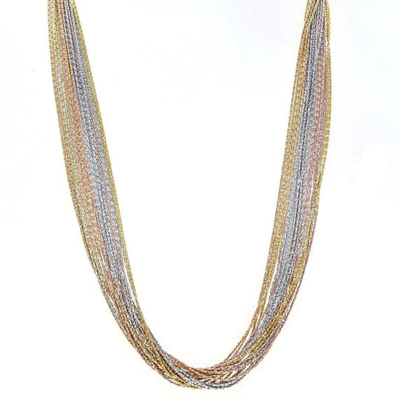Drape yourself in timeless elegance with the help of Eros Milano Radiance 20-Strand Necklace in Tri-Color Vermeil. Brilliant from every angle.