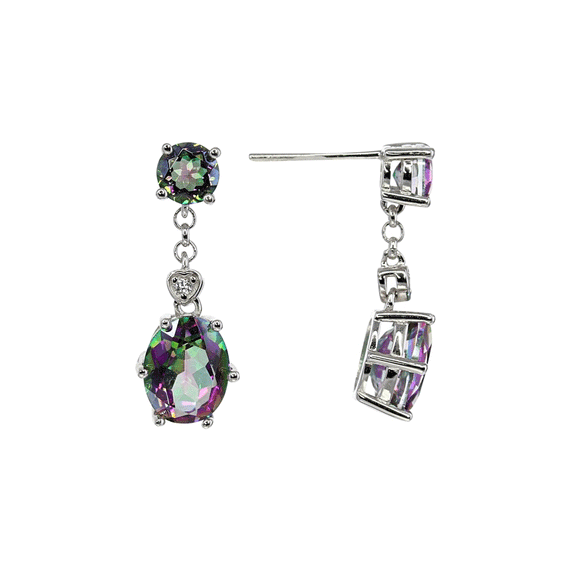 Two beautiful purple/green Mystic Quartz pieces have been set with a white topaz detail to accentuate the vibrant color of the quartz.