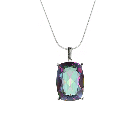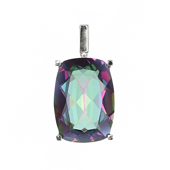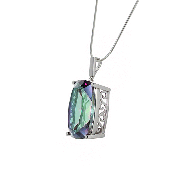 This large piece of Mystic Quartz has been set to create a simple pendant with a beautiful, detailed sterling silver setting.
