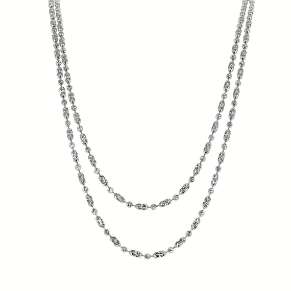 Italian 35" Moon Cut Bead Necklace in Rhodium Vermeil