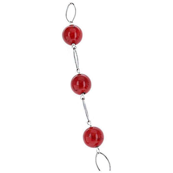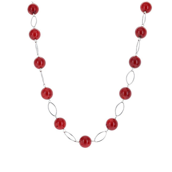 Delicate sterling silver links are combined with natural coral in this stand-out Red Coral Ball & Sterling Silver Necklace.