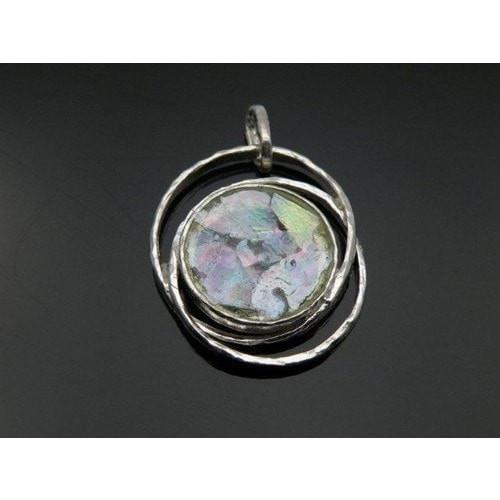 Pendant is 1 inch in length and 3/4 of an inch in diameter. Bringing History to Life Roman Glass Jewelry is made of 2000-year-old Roman glass that has been excavated from sites around Israel and brought back to life as heirloom-quality jewelry. Each piece is a unique and distinctive treasure. The glass is set by hand in the finest sterling silver. Made in Israel Certificate of Authenticity Included. For more information, Visit our Roman Glass Education page.