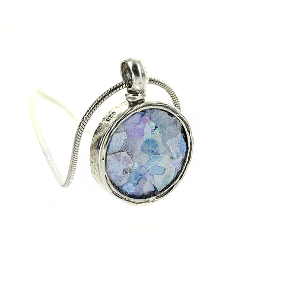 With 2000-year-old Roman Glass on one side and an authenticated Roman mite on the other, this pendant is a unique treasure and makes for a gift with significance and deep meaning.