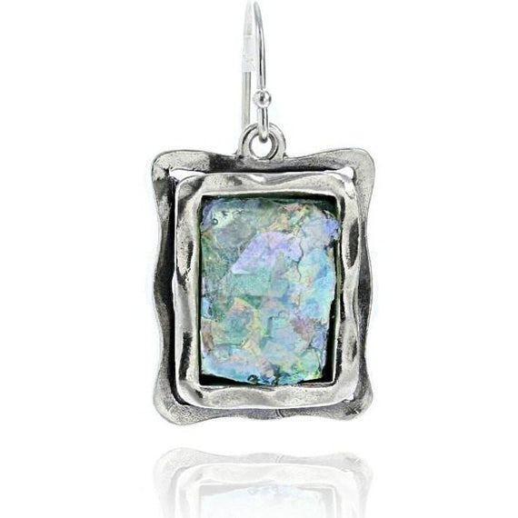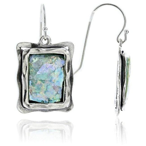 Earring Size: 1" High x .75" Wide Bringing History to Life Roman Glass Jewelry is made of 2000-year-old Roman glass that has been excavated from sites around Israel and brought back to life as heirloom-quality jewelry. Each piece is a unique and distinctive treasure. The glass is set by hand in the finest sterling silver. Made in Israel For more information, Visit our Roman Glass Education page.