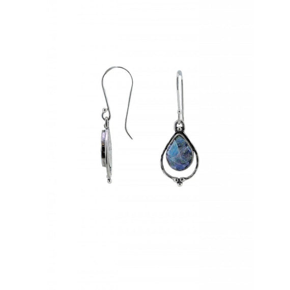 Earring Length: 1 1/4 inches from hook to bottom. Glass Piece: .5 inch in diameter. Bringing History to Life Roman Glass Jewelry is made of 2000-year-old Roman glass that has been excavated from sites around Israel and brought back to life as heirloom-quality jewelry. Each piece is a unique and distinctive treasure. The glass is set by hand in the finest sterling silver. Made in Israel For more information, Visit our Roman Glass Education page.