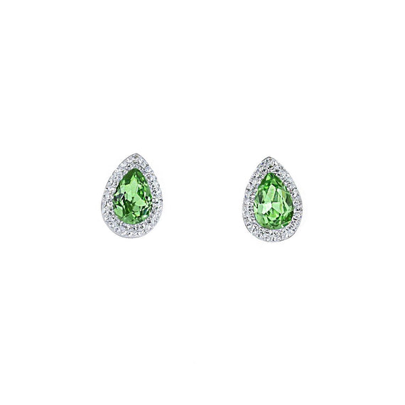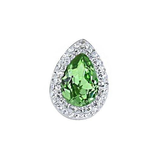 Beautiful Green Preciosa Crystal in a teardrop shape with clear Preciosa crystals around the edges. This simple and elegant, Preciosa Crystal earring can add a pop of color and sparkle to any ensemble.