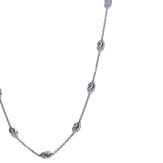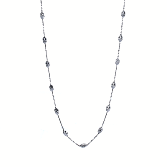 Private Collection 16" and 30" Moon Cut Bead Necklaces in Rhodium Vermeil are dainty chains graced with precision, moon cut beads.